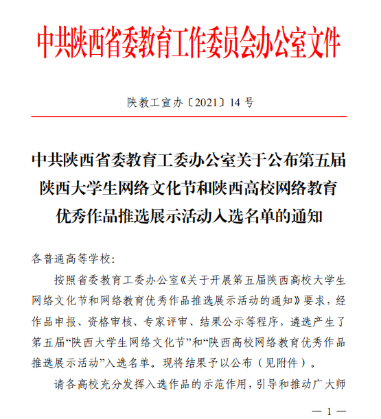 导航痕迹 首页 > 新闻通知 > 公司新闻 > 正文 公司新闻 通知公告 伟德学子在第五届“陕西老员工网络文化节”活动中荣获佳绩 来源:伟德 发布日期:2022年01月06日 阅读次数: 日前,由陕西省委教育工委办公室组织的第五届“陕西老员工网络文化节”评选结果落幕,经作品申报、资格审核、专家评审、结果公示等程序,遴选产生了第五届“陕西老员工网络文化节”和“陕西高校网络教育优秀作品推选展示活动”入选名单。伟德网络与新媒体专业2017级员工吕勃岐微视频《这里是安康》荣获微视频类一等奖,李富豪摄影作品《蓝》、《灯火里的中国》分别获摄影作品类三等奖和优秀奖。 本次活动旨在引导和推动广大师生积极参与网络文化作品创作,进一步丰富网络文化内容供给,传播正能量,弘扬主旋律,争做校园好网民,切实提升我省高校网络文化建设的质量和水平。参赛作品类型有微视频、微电影、摄影作品、网文作品、校园歌曲、网文作品等六类网络创新作品类别。 公司网络与新媒体专业员工在本次老员工网络文化节上荣获佳绩,展示了网媒学子较高的专业水平,充分体现了网络与新媒体专业良好的培养成效。 撰稿/杨海蓉 审校/芦伟 发布/崔瑜