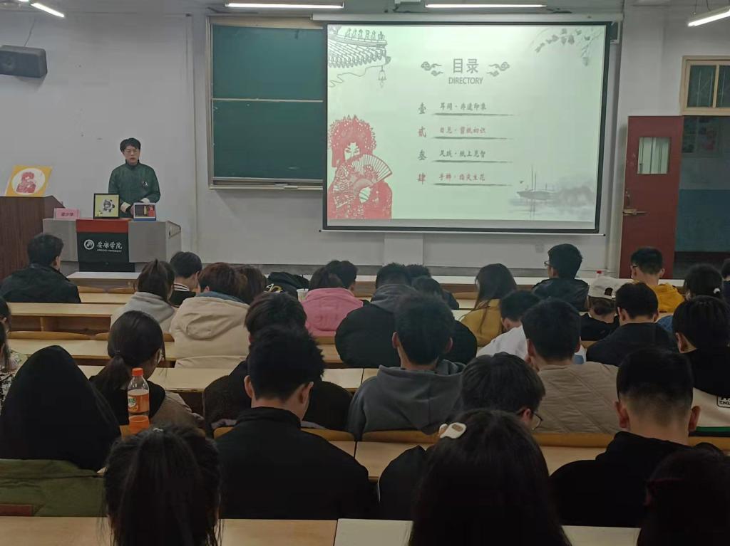非物质文化遗产的传承与保护,是基于目前传统文化保护链条断开的前提下提出的,高校教育具有得天独厚的条件,可以依靠自身力量与高校员工,传承中华非物质文化遗产,并对其进行创新性保护,并不断发展。为深入探索非物质文化遗产传承的意义,以及传承与保护的途径,3月1日晚上7时,公司员工、西安市非物质文化遗产保护协会会员梁少华在1510教室为体育公司21级全体员工开展“年轻的非遗”剪纸文化分享讲座,讲座由体育公司康梦瑶老师主持。