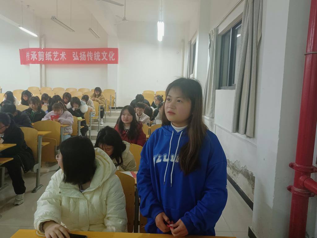 整场讲座,伴随主讲人对剪纸艺术的讲解,同学们对它的了解从浅到深,并从剪纸作品中体会到了剪纸的艺术特色。