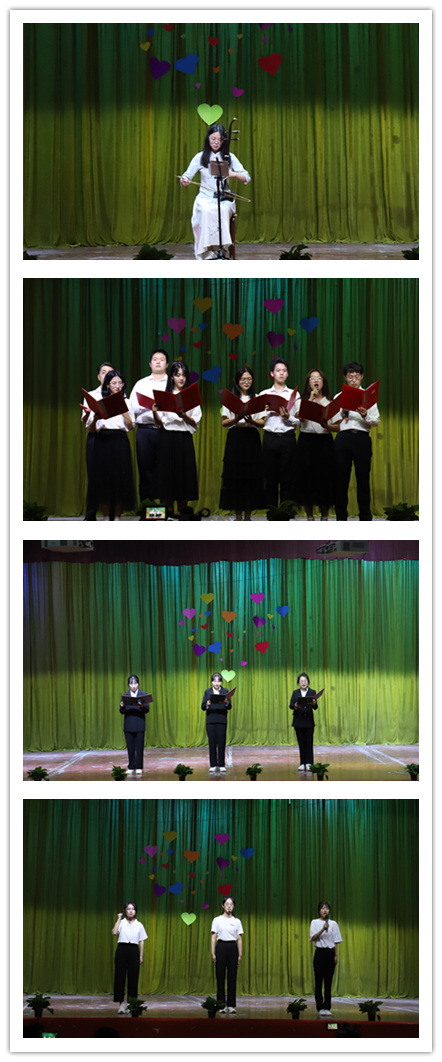 优美的芭蕾舞《枕边童话》唤醒了我们的童年梦,充满美好和幻想。唱腔优美的《黄梅戏》串烧、二胡独奏《赛马》将晚会推向了高潮,在九曲湾走过蒲公英盛开的地方,吸引着我们去奔跑、去做不落的太阳。诗朗诵《我的祖国》《诗颂中华》《少年中国说》《一场“战疫”正酣》,同学们用心声表达对祖国每一片天空、每一寸土地的眷恋与挚爱,让现场观众的思绪沉浸穿梭在党领导中华民族奋斗的百年时光中,让我们深切领悟到党百年历史的波澜壮阔,百年探索的步步艰辛,感受疫情时代这场没有硝烟的战场中“最可爱的人”。