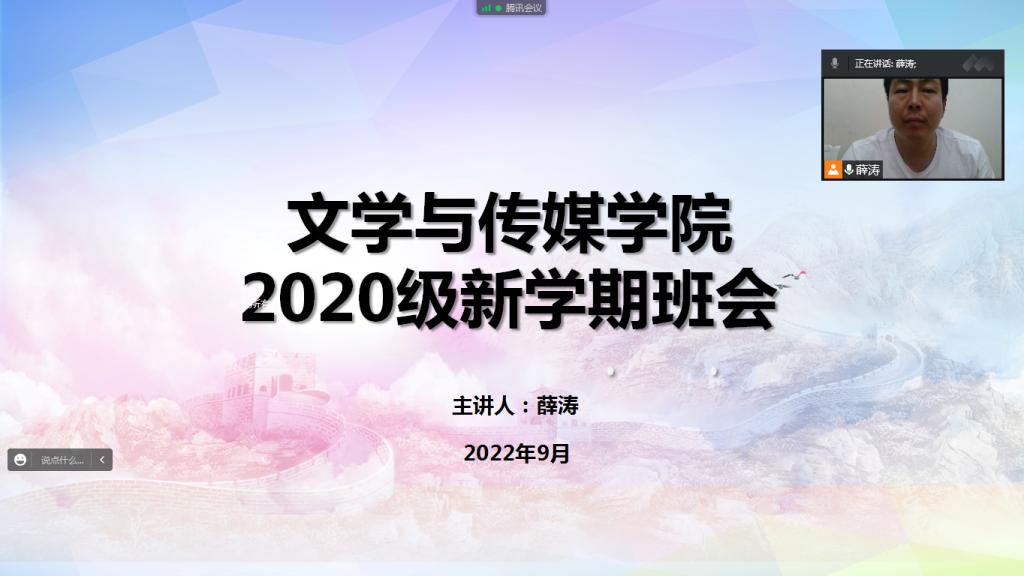 2020级辅导员辅导员薛涛分别从新学期大家状态调整、疫情防控、防范电信诈骗、文明上网等方面进行宣传引导,对《伟德“中学语文卓越团队班”人才培养计划行动方案(试行)》文件进行解读,解答教团队格证报名考试相关问题,并就线上教学向全体同学提出纪律要求。
