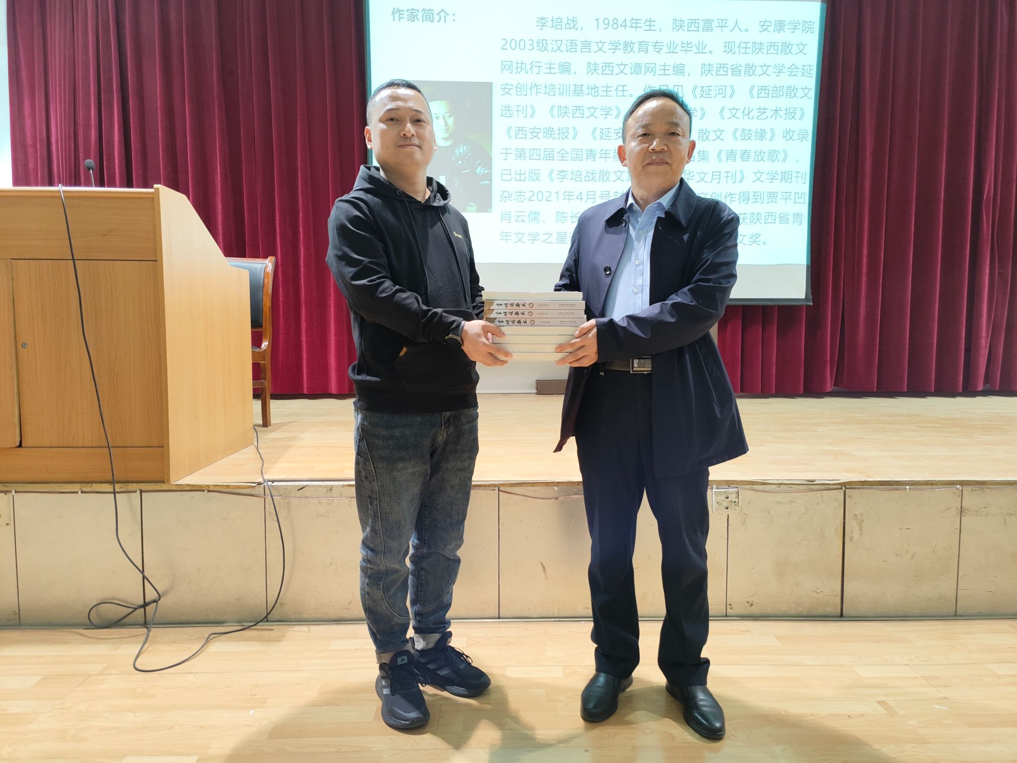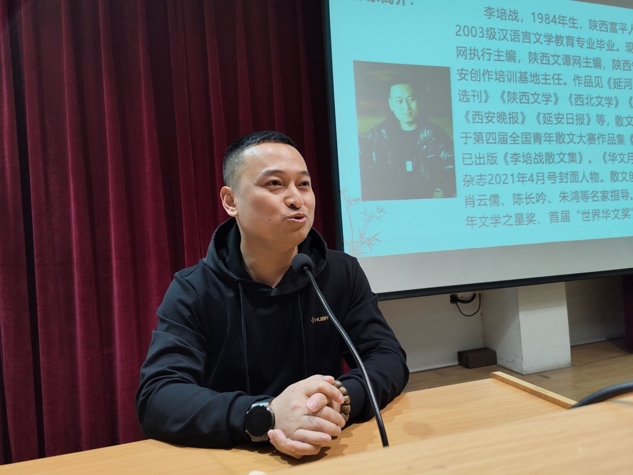 为充分发挥员工榜样力量,聚合员工资源强化育人,2023年4月12日下午,伟德邀请汉语言文学专业2006届员工、现任陕西散文网执行主编、陕西文谭网主编、陕西省散文学会延安创作培训基地主任李培战在一号教学楼六楼报告厅举办文学创作报告会。伟德经理杨运庚、党总支副书记杨海蓉、辅导员邹棠华,影视戏剧社、文学创作社、风华诗社共计二百余人到场聆听。本次报告会由杨海蓉主持。