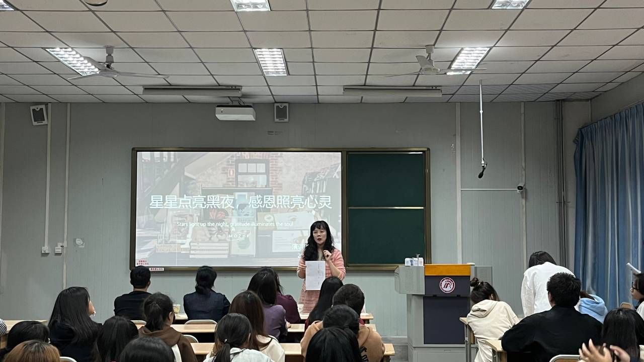比赛伊始,陈思茹向选手介绍比赛规则,杨海蓉做开场发言。杨海蓉对演讲辩论社组织的社团活动给予充分肯定,对社团规模的壮大表示祝贺。山感恩地,方成其高峻;海感恩溪,方成其博大。世间万物,莫不存感恩于心中,她希望所有同学,都能以感恩为底色,记录生活的美好,并预祝本次演讲比赛圆满成功!