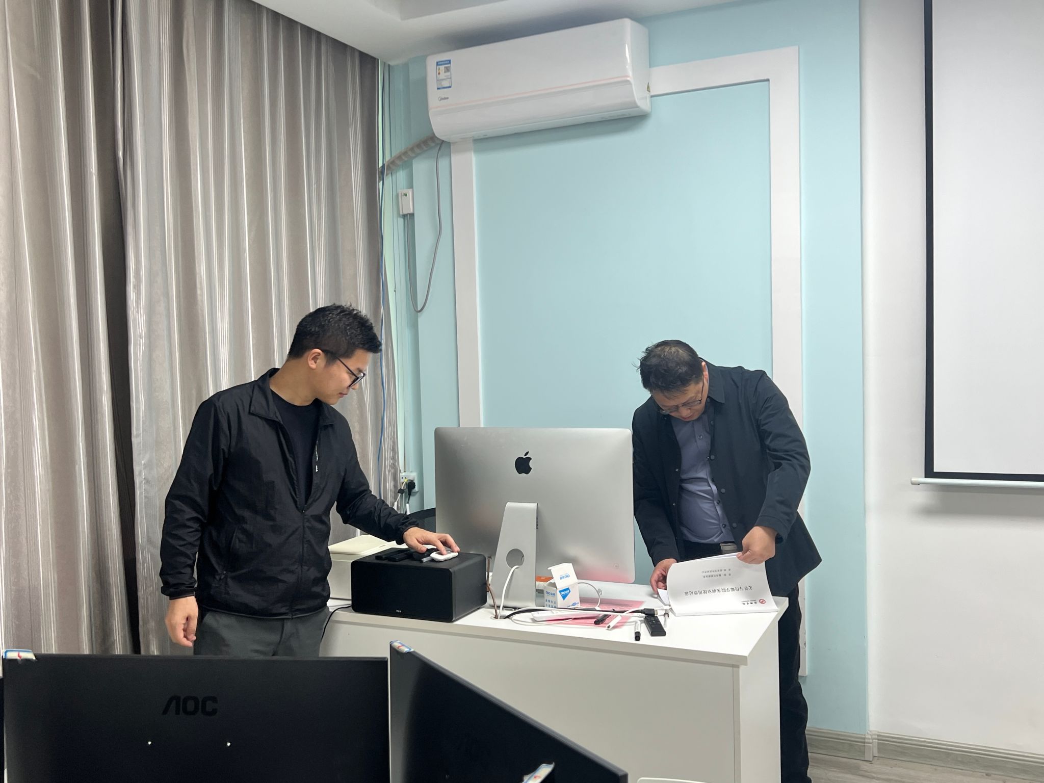 为进一步规范实训室管理,保障教学实践活动安全有序开展,9 月 29 日下午,教学副经理朱云带领分管实验室系副主任张建涛对公司秘书综合实训室、创意写作实训中心、新媒体虚拟演播实训室开展了专项检查工作。