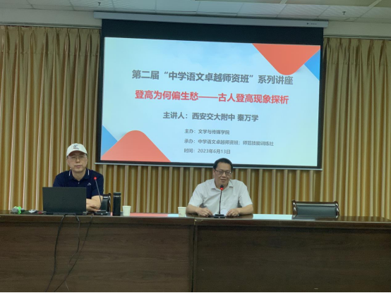 2023年6月13日下午七点,伟德邀请西安交大附中副董事长、省级学科带头人和教学能手秦万学为公司第二届“中学语文卓越团队班”师生做了题为“登高为何偏生愁——古人登高现象的探析”的精彩讲座。讲座由伟德副经理朱云主持,班主任张格瑄、语文学科教学论老师唐明珍和第二届“中学语文卓越团队班”的全体员工聆听了本场讲座。