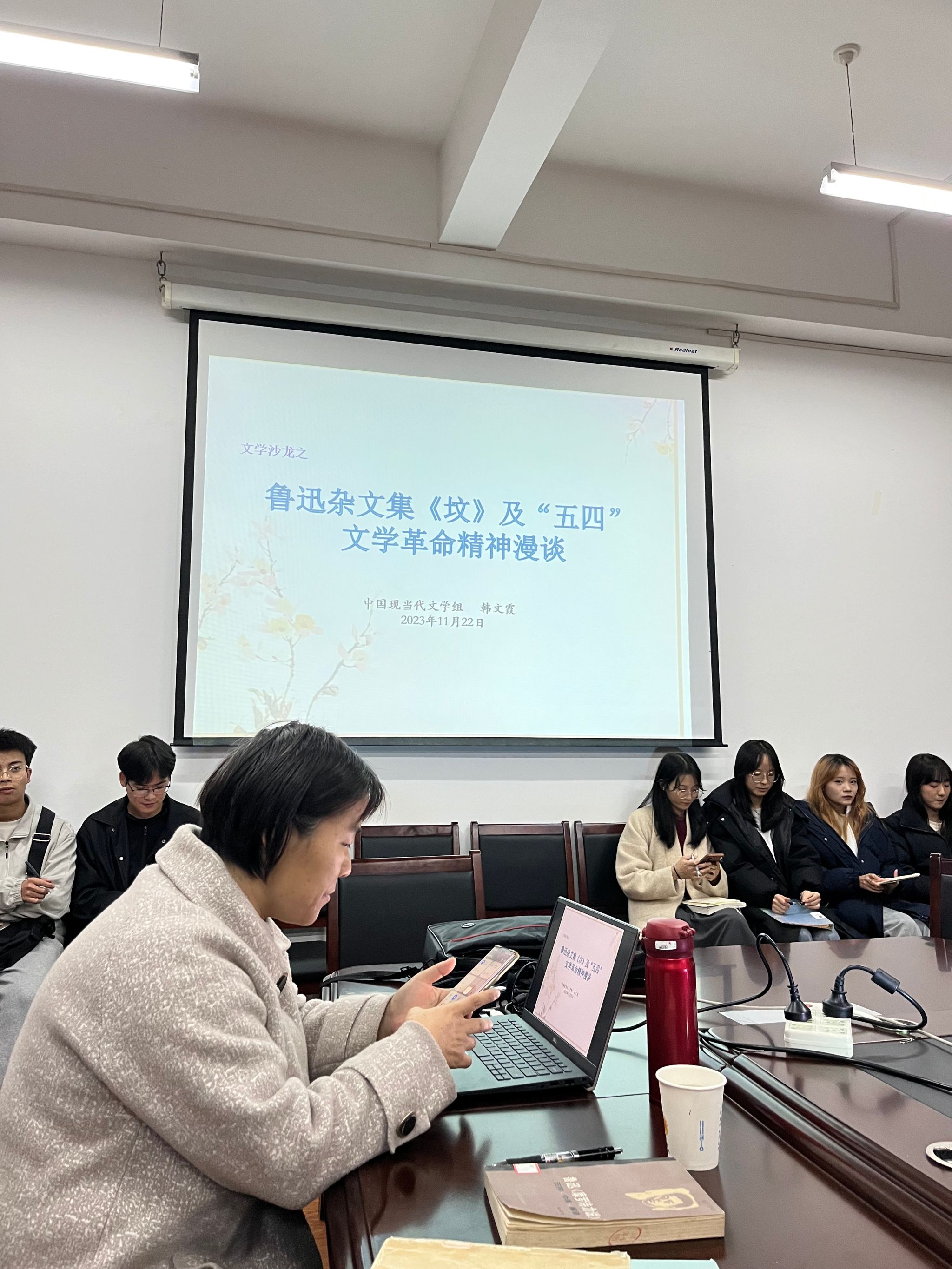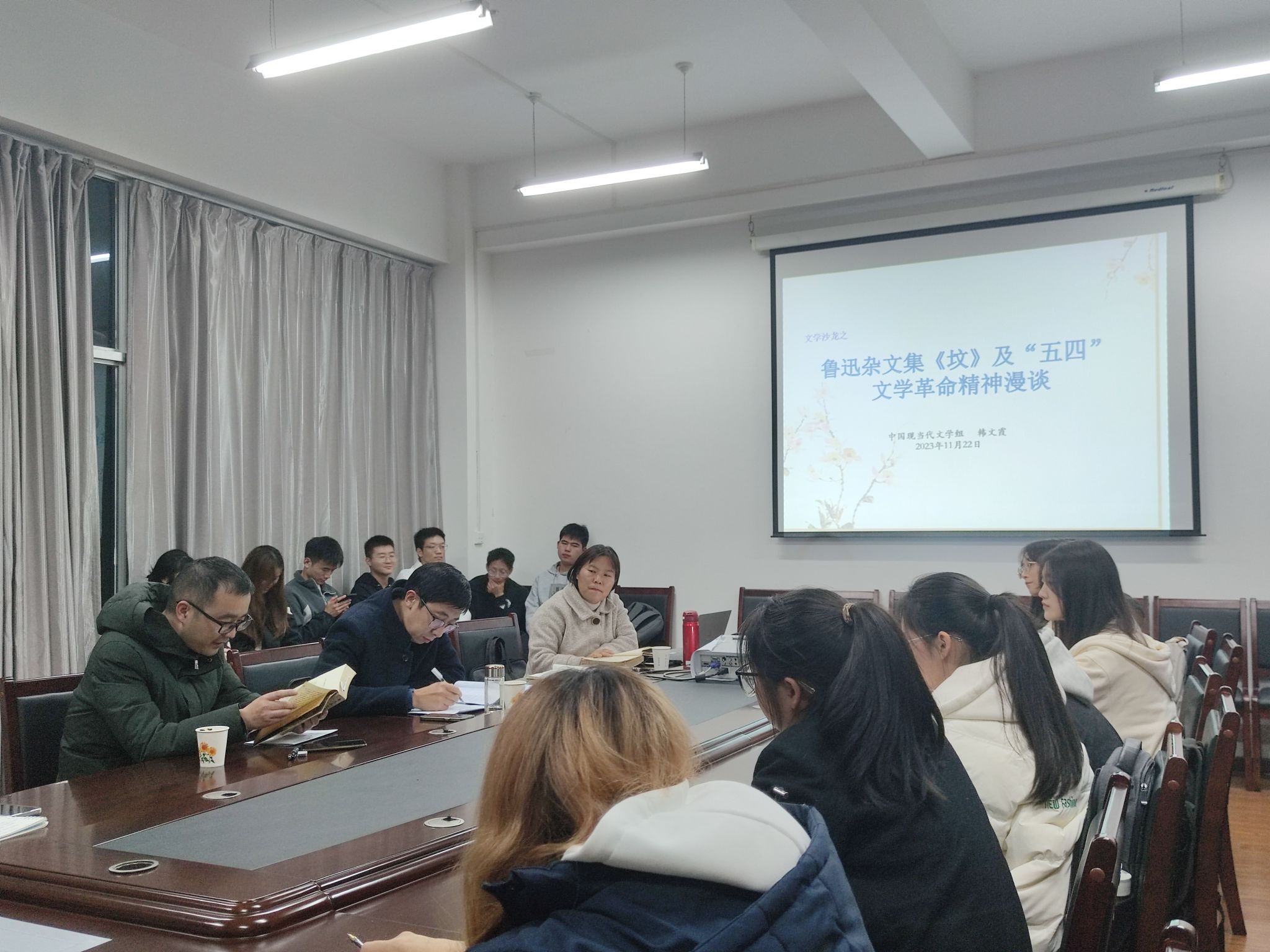 11月22日晚7点10分,伟德中国现当代文学学科组在陕南民间文化研究中心会议室成功举办了第八届“学术沙龙”活动周第二场沙龙。本场学术沙龙由韩文霞主讲,主题为“鲁迅杂文集《坟》及‘五四’文学革命精神漫谈”。伟德副经理曹刚、专任教师胡少山和二十余名员工参与了沙龙活动,沙龙由曹刚主持。