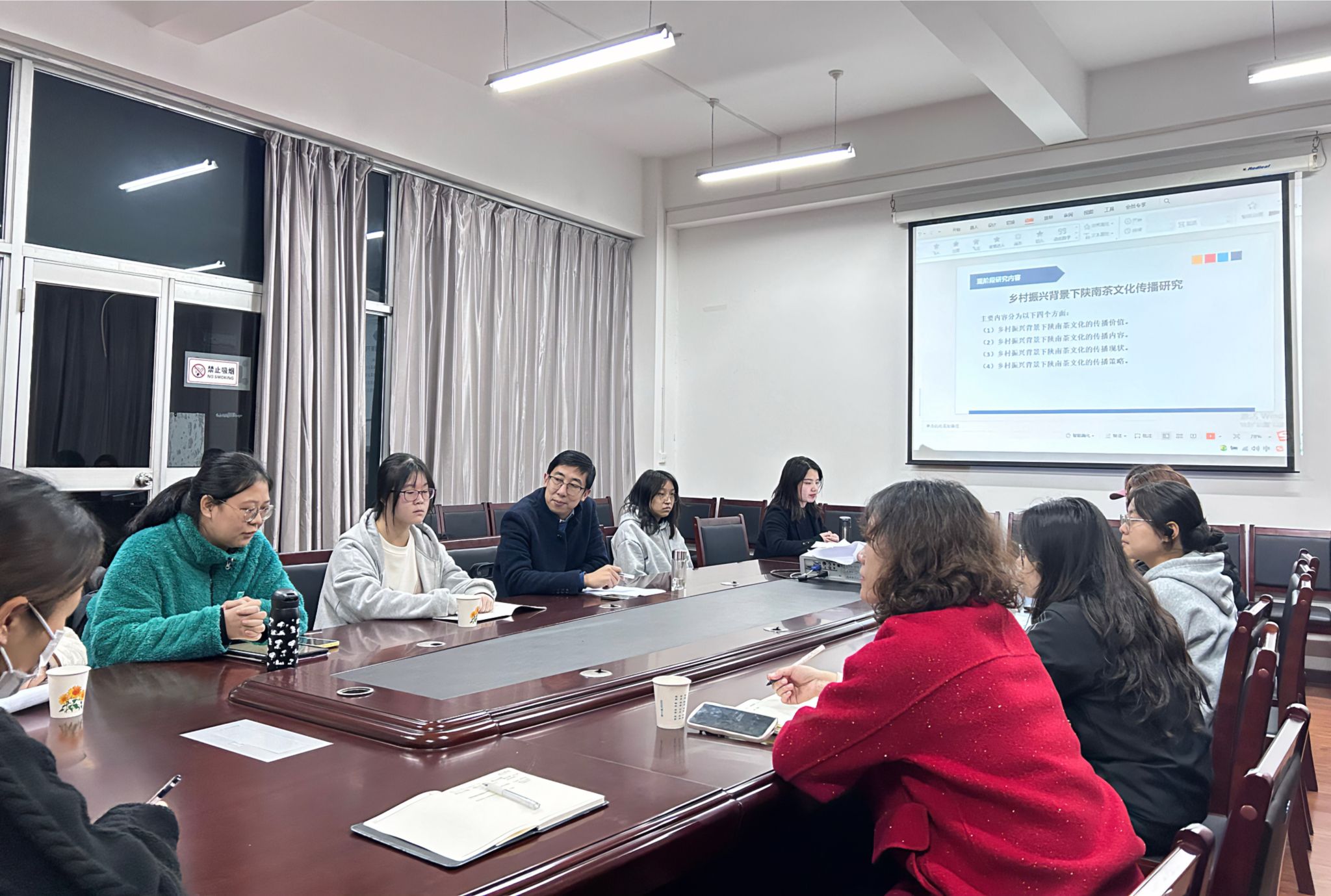 评议人崔瑜老师从一带一路背景下,中国茶文化对外传播策略与发展展开论述。此外,针对乡村振兴背景下陕南文化传播研究选取具有代表性陕南茶文化名片如安康平利茶、紫阳富硒茶等内容进行了案例分析。刘锦老师结合自身近年来的学术研究方向:“新农人”短视频研究进行了相关分享,韩佳颖和何鲁艺两位新进教师结合研究生在读期间的研究方向初步确定自己今后的研究方向,其余到场老师针对以上几位老师的汇报,从不同角度提出具体的建议。参加活动的网媒专业员工也积极向老师提问,各位老师也给与了耐心的回答。