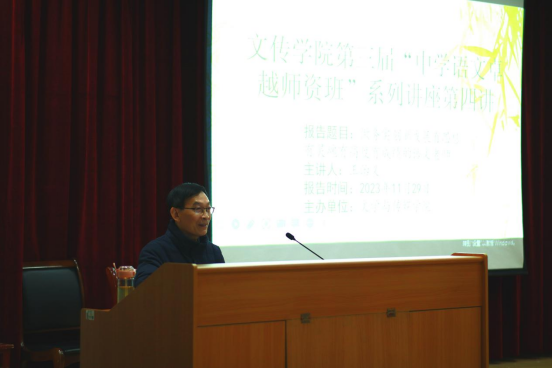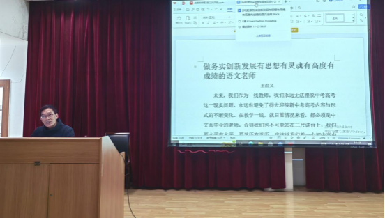 2023年11月29日下午,在1号教学楼六楼报告厅,伟德邀请到安康中学高级教师王治义老师为“中学语文卓越团队班”做了题为《做务实创新发展有思想有灵魂有高度有成绩的语文老师》的讲座,讲座由卓越团队班班主任唐明珍主持,“中学语文卓越团队班”全体员工聆听了本场讲座。