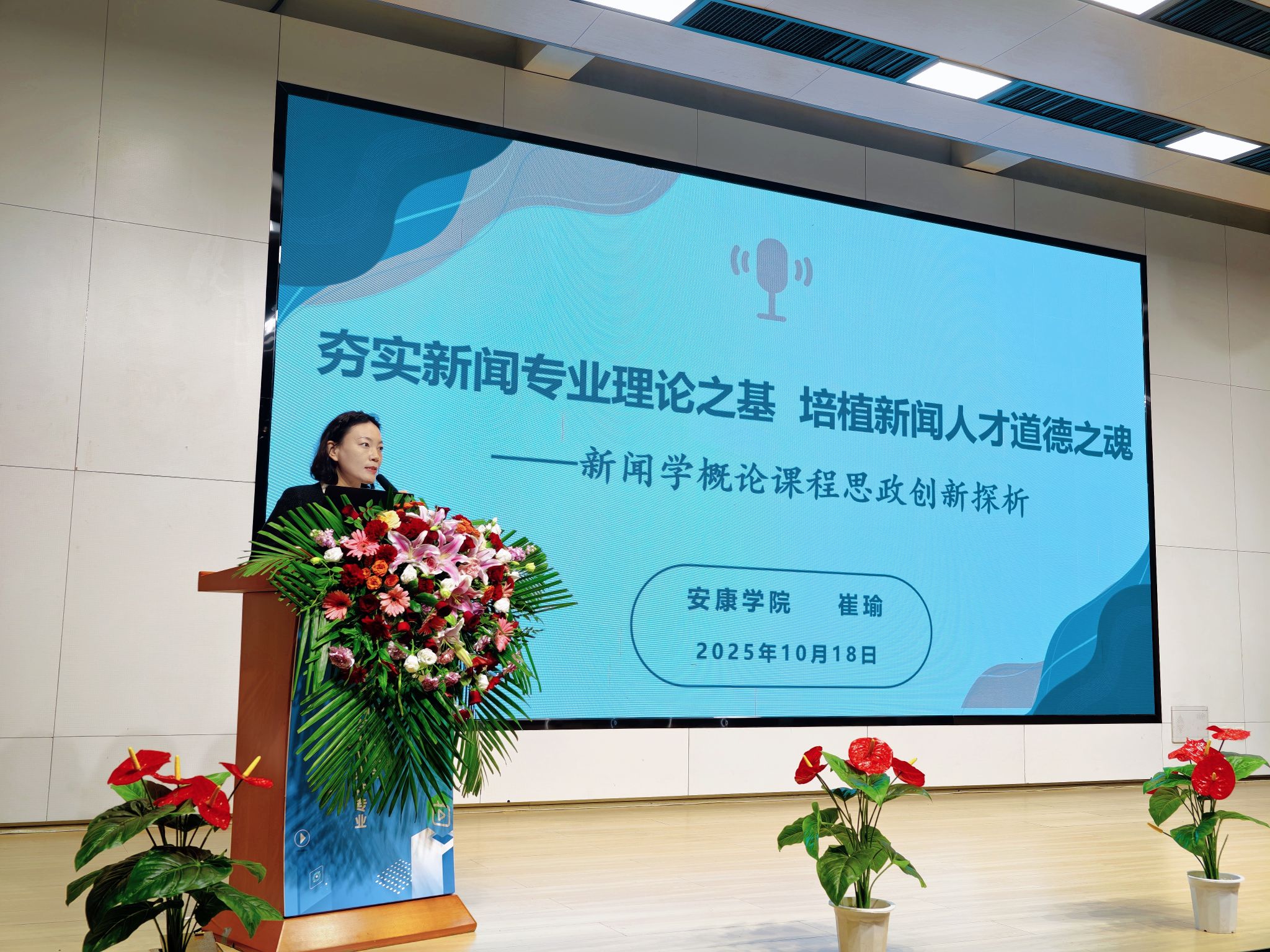 本届研讨会邀请了西安交通大学、西北大学、北京交通大学、浙江传媒公司等领衔新媒体教育和新媒体行业的学界知名专家、业界前沿行家,与全国各大高校参会嘉宾共同研讨、分享网络与新媒体专业及传媒行业发展的新趋势、新动向。同时还邀请了国内外相关领域的学术期刊代表和教材主编莅临现场交流。会议设主论坛和“教学教研与学术发表”“国际教育与产教融合”两个分论坛。公司教师崔瑜在“教学教研与学术发表”分论坛作了题为《夯实新闻专业理论之基 培植新闻人才道德之魂——新闻学概论课程思政创新探析》的报告,结合自身的教学经历,崔瑜主要从地方本科院校网媒专业员工的学情分析、“新闻学概论”的课程性质与内容、“新闻学概论”的课程思政教学痛点、“新闻学概论”的课程思政教学创新以及取得的成效等方面进行了交流分享,其观点取得了与会专家和同仁的一致认可。