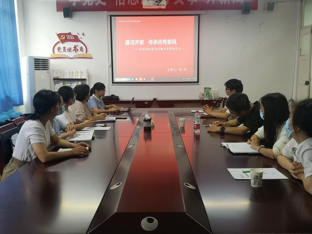 导航痕迹 首页 > 标杆党总支 > 党建+X > 正文 标杆党总支 总支概况 制度建设 学习计划 党建工作总结 党建+X 成果展示 样板党支部 伟德教工第一支部开展“廉洁齐家,传承优秀家风”主题党日活动 来源:伟德 发布日期:2022年09月13日 阅读次数: 9月7日下午,伟德教工第一党支部开展了“廉洁齐家,传承优秀家风”主题党日活动,活动在2307会议室举行,由支部书记韩文霞主持,支部全体成员参加学习。 此次会议邀请孙鸿教授为我支部做“廉洁齐家,传承优秀家风”主题讲座。孙教授从中国传统家庭教育开始讲解,介绍了中国传统家庭教育的目的、方法,中国传统家训的主要内容及对当代廉洁齐家的启示,最后孙教授指出,廉洁是共产党人的基本底线,党员同志要以“家廉”促“党廉”,净化党内政治生态;以“家廉”促“社廉”,促进社会风清气正。 活动结束后,教师党员们纷纷表示,通过孙教授的此次分享,学习收获良多。家风建设关系着社风、民风、国风,是促进社会和谐、民族进步、国家发展的重要精神动力。党员同志要遵纪守法、廉洁从政、修身齐家,以自身行动带动和引导家人亲属营造风清气正、祥和安乐的家庭氛围。 撰稿/曹璇璇 审核/韩文霞 摄影/发布/崔瑜