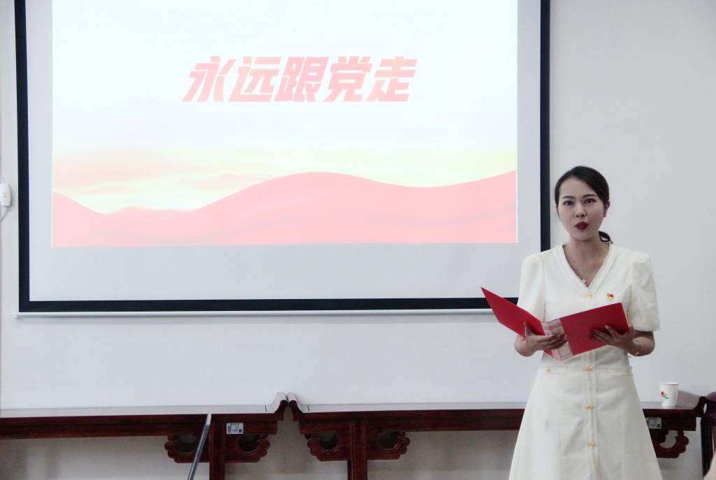 “我志愿加入中国共产党,拥护党的纲领,遵守党的章程……”面对鲜红的党旗,全体党员在伟德副经理李婷的带领下,重温入党誓词,用铿锵有力的声音再次向党作出庄严承诺。随后,来自教工一支部的青年党员黄治强,谭志轩与教工二支部青年党员盘珊君分别带来诗朗诵《永远跟党走》《大写的中国》,用生动的语言、真挚的情感,弘扬伟大建党精神、礼赞时代新成就。