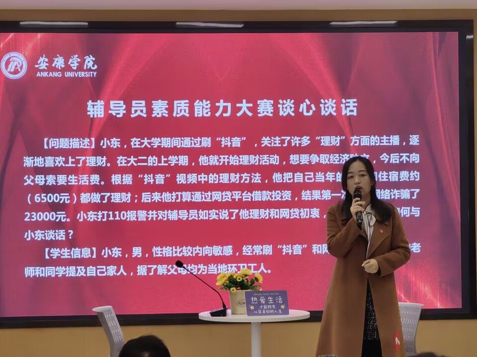 本次大赛分为初赛和决赛两个阶段,初赛采用基础知识测试的形式,从46名辅导员中遴选6名辅导员进入决赛角逐一二等奖。决赛包括案例分析和谈心谈话两个环节,全面考察辅导员对员工特征、成长成才规律的掌握程度及分析问题、研判问题、解决问题、应急处突等能力。参赛辅导员全方位展示了个人素养、知识储备和专业技能,充分彰显了辅导员队伍良好的专业素养和育人风采以及担当实干、追求卓越的精神品质。