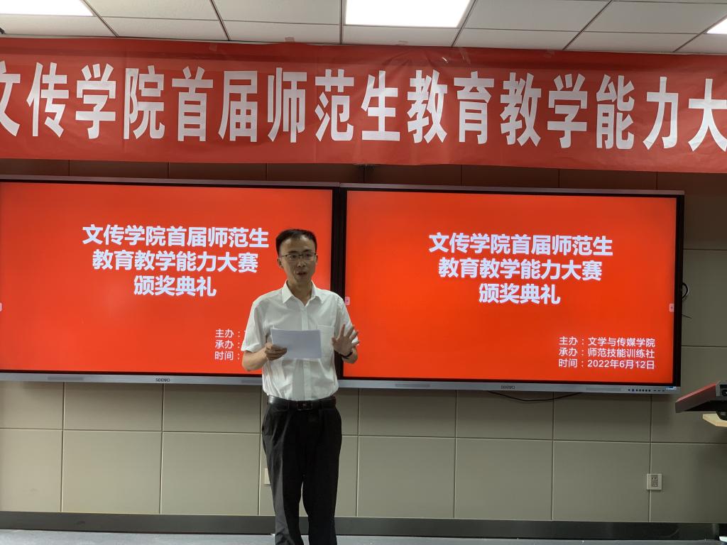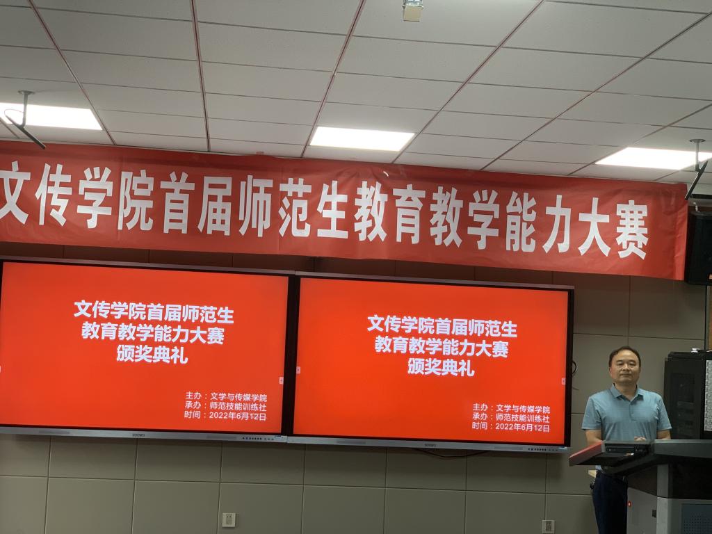 2022年6月12日,由师范技能训练社承办的伟德首届师范生公司产品能力大赛在公司师范生职业技能训练中心4204教室隆重举办。本次大赛特邀安康市汉滨区教研室高级教研员李玉恒老师,汉滨初级中学董事长助理、教务主任全东老师,伟德教学督导邸玲老师共同担任评委。文学与传媒公司党总支书记芦伟、副经理朱云、党总支副书记杨海蓉、汉语言文学系主任韩文霞、语文学科教学论任课教师、师范技能训练社指导教师张格瑄在现场观摩比赛。本次大赛采用网络同步直播的方式进行,公司其他教师和员工通过校园网观摩了比赛过程。