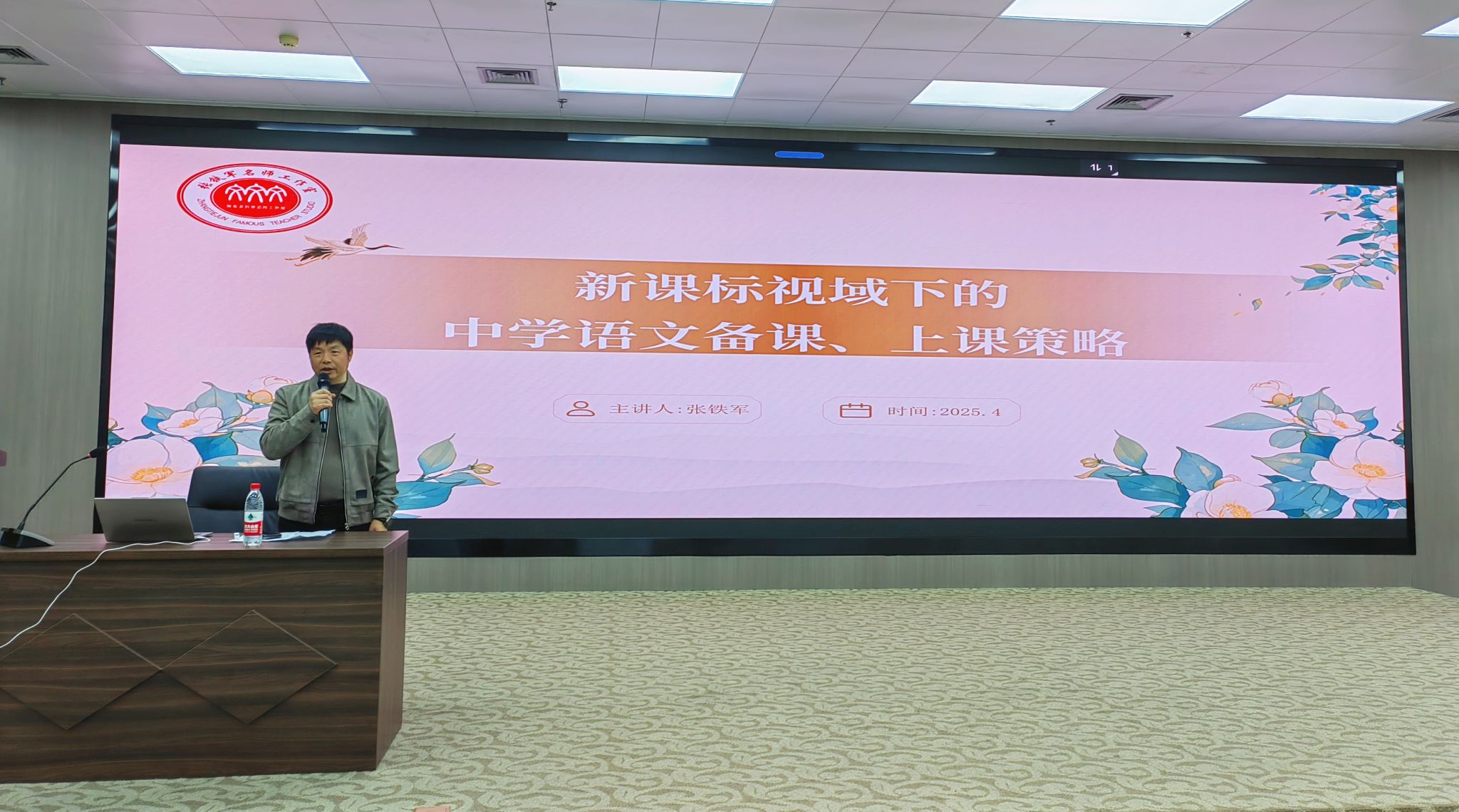 为深化师范生教学实践能力培养,助力卓越团队成长,4月2日晚,伟德在图书馆六楼报告厅举办 "新课标视域下的中学语文备课与教学策略" 专题讲座。本次活动特邀陕西省教学能手、安康中学正高级教师张铁军主讲,班主任唐明珍和第四届 "中学语文卓越团队班" 全体学员及部分毕业生共同参与。