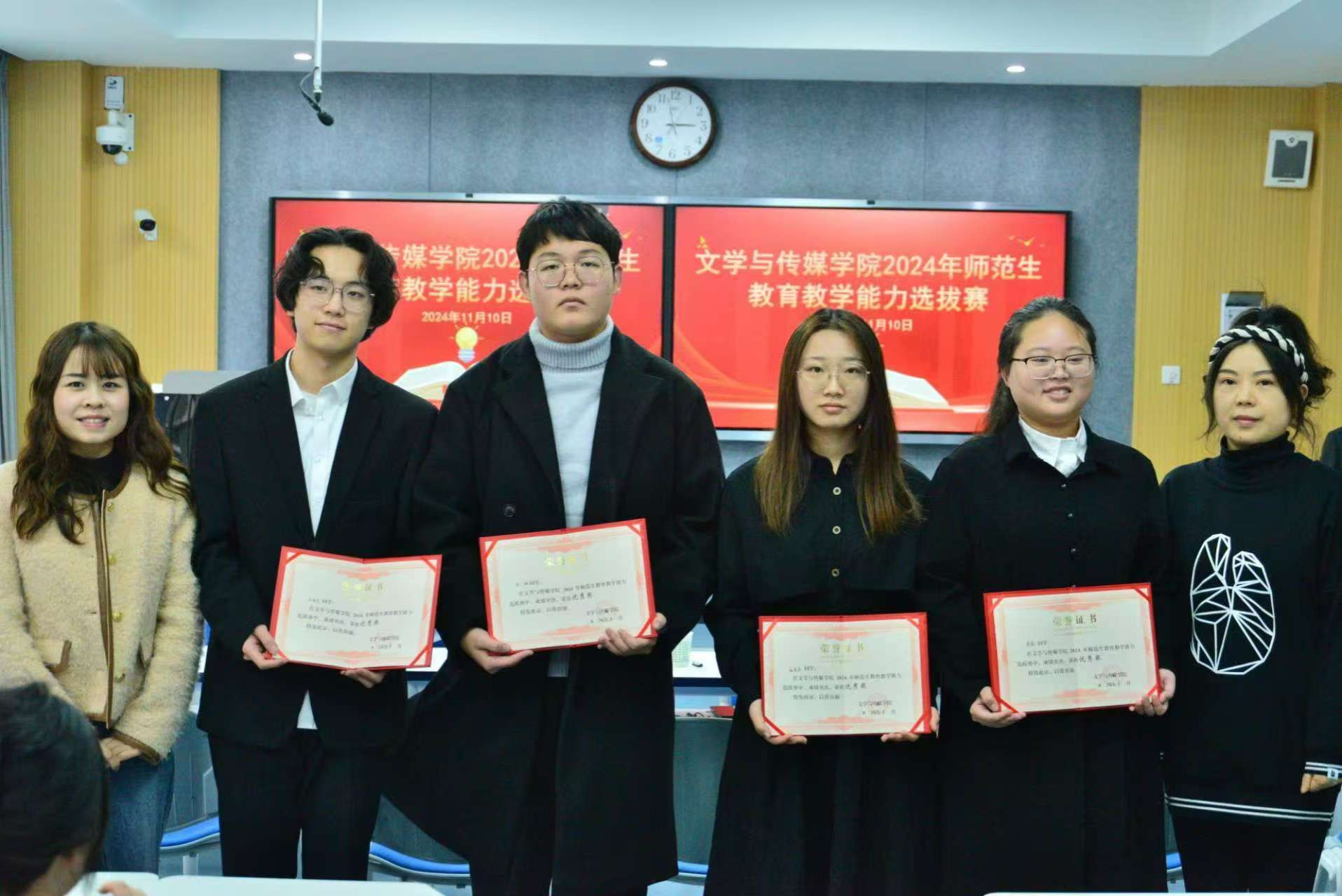 参照陕西省2024年度师范生公司产品能力大赛要求,12位选手分别从即兴演讲、粉笔字书写、教学设计方案与课件制作、说课与模拟授课、现场回答问题五个环节展示了自己的教学过程。参赛选手激情澎湃的演讲、规范美观的书写、富有创意的课件制作、逻辑清晰的说课与精彩纷呈的授课,以及竞赛中体现出来的先进公司产品理念赢得了评委与观摩师生的一致好评。